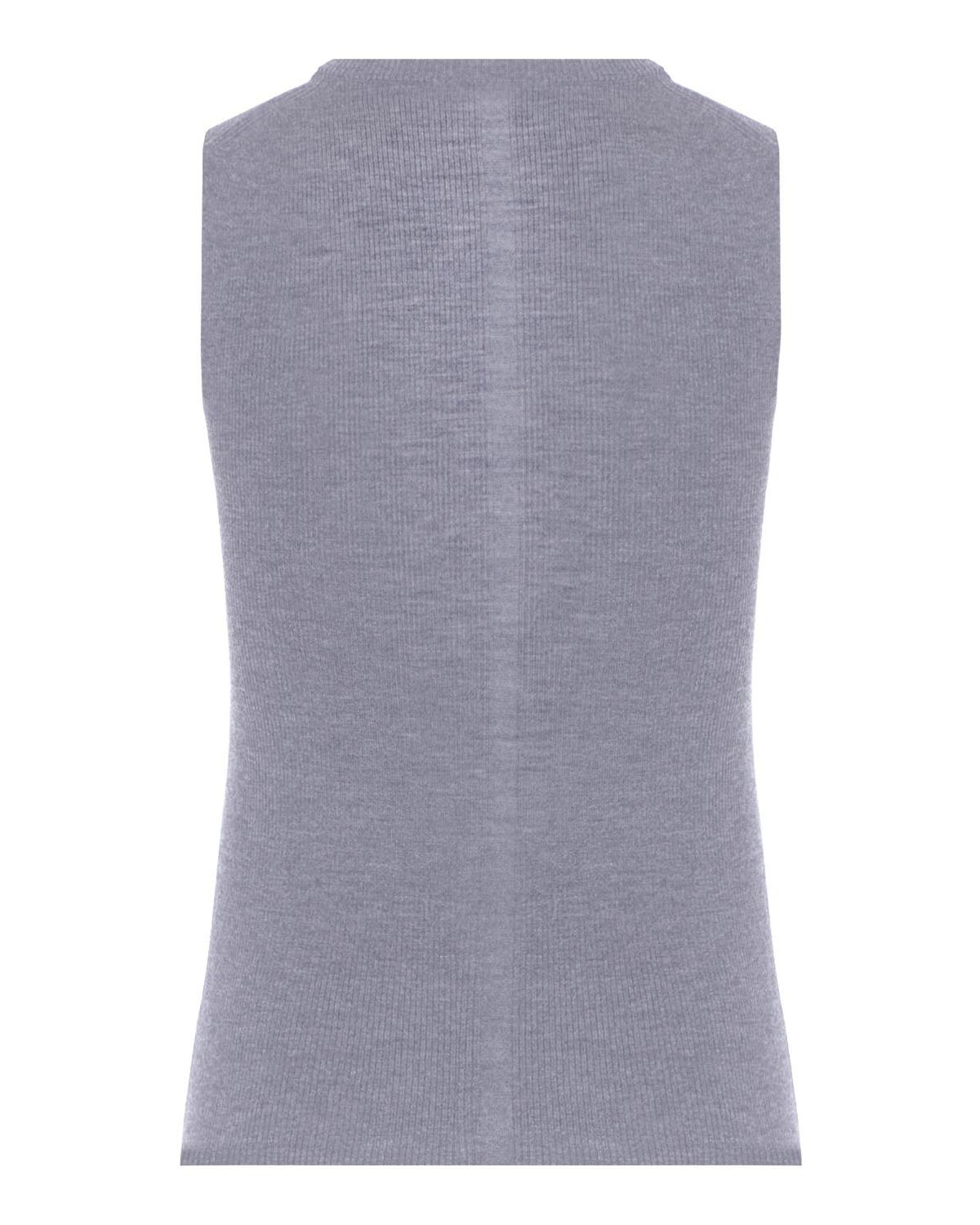 Безрукавка из тонкой высококачественной шерсти мериноса с декоративным элементом на спине. Вязаная текстура придает изделию интересный визуальный эффект, а эластичность ткани позволяет идеально облегать фигуру, создавая женственный силуэт.