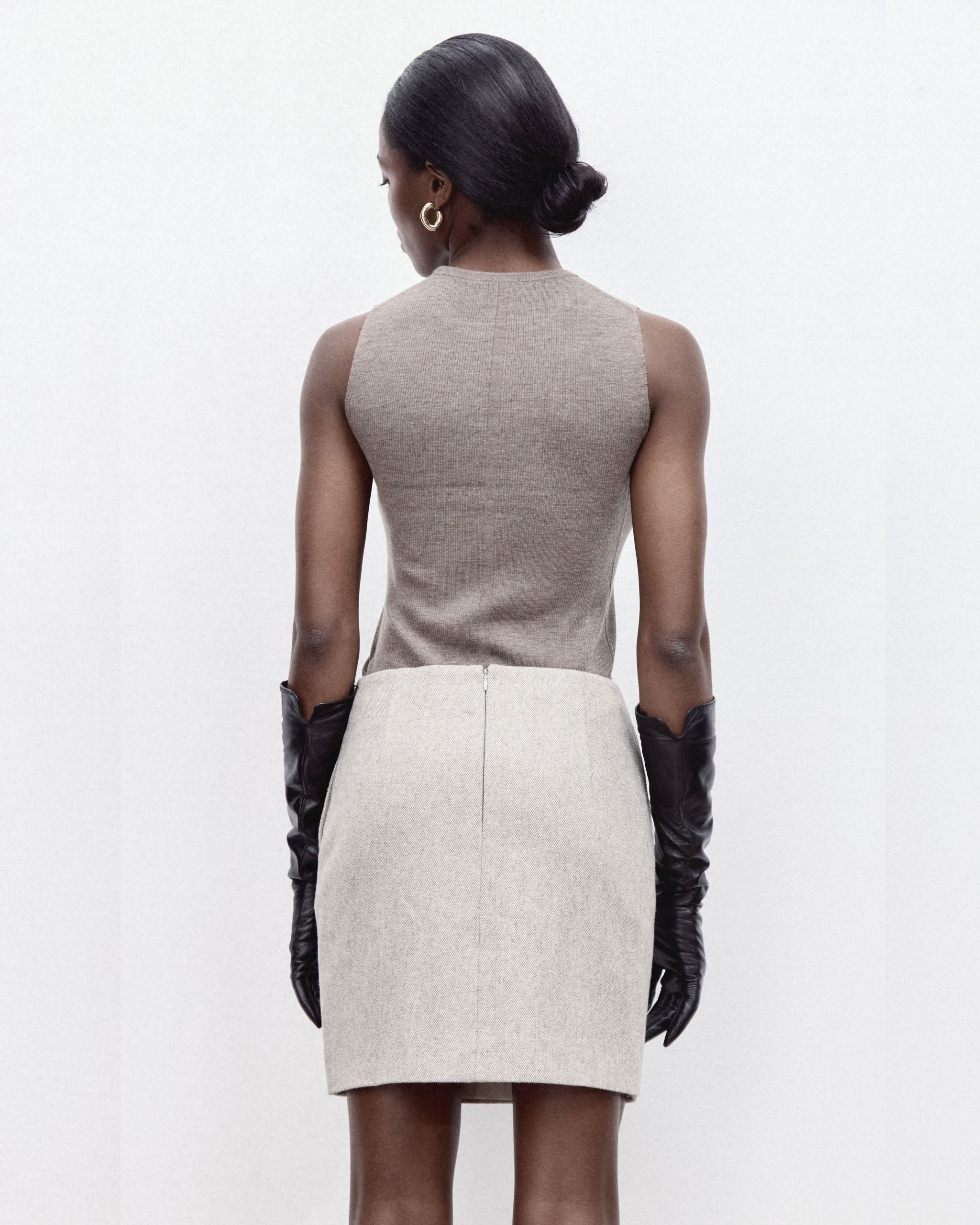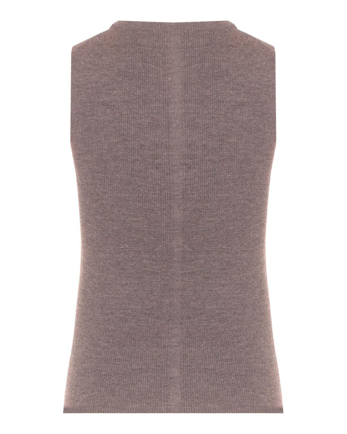 Безрукавка из тонкой высококачественной шерсти мериноса с декоративным элементом на спине. Вязаная текстура придает изделию интересный визуальный эффект, а эластичность ткани позволяет идеально облегать фигуру, создавая женственный силуэт.