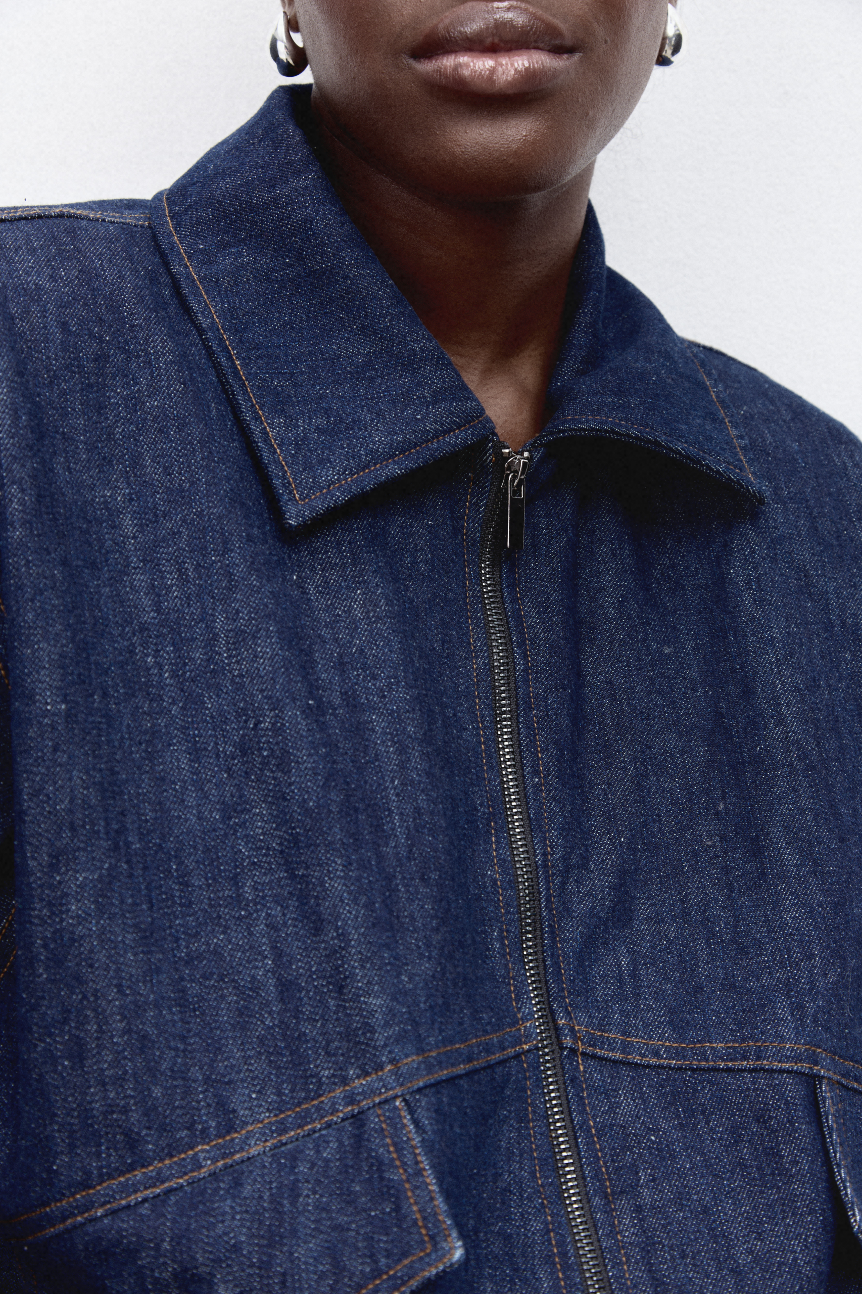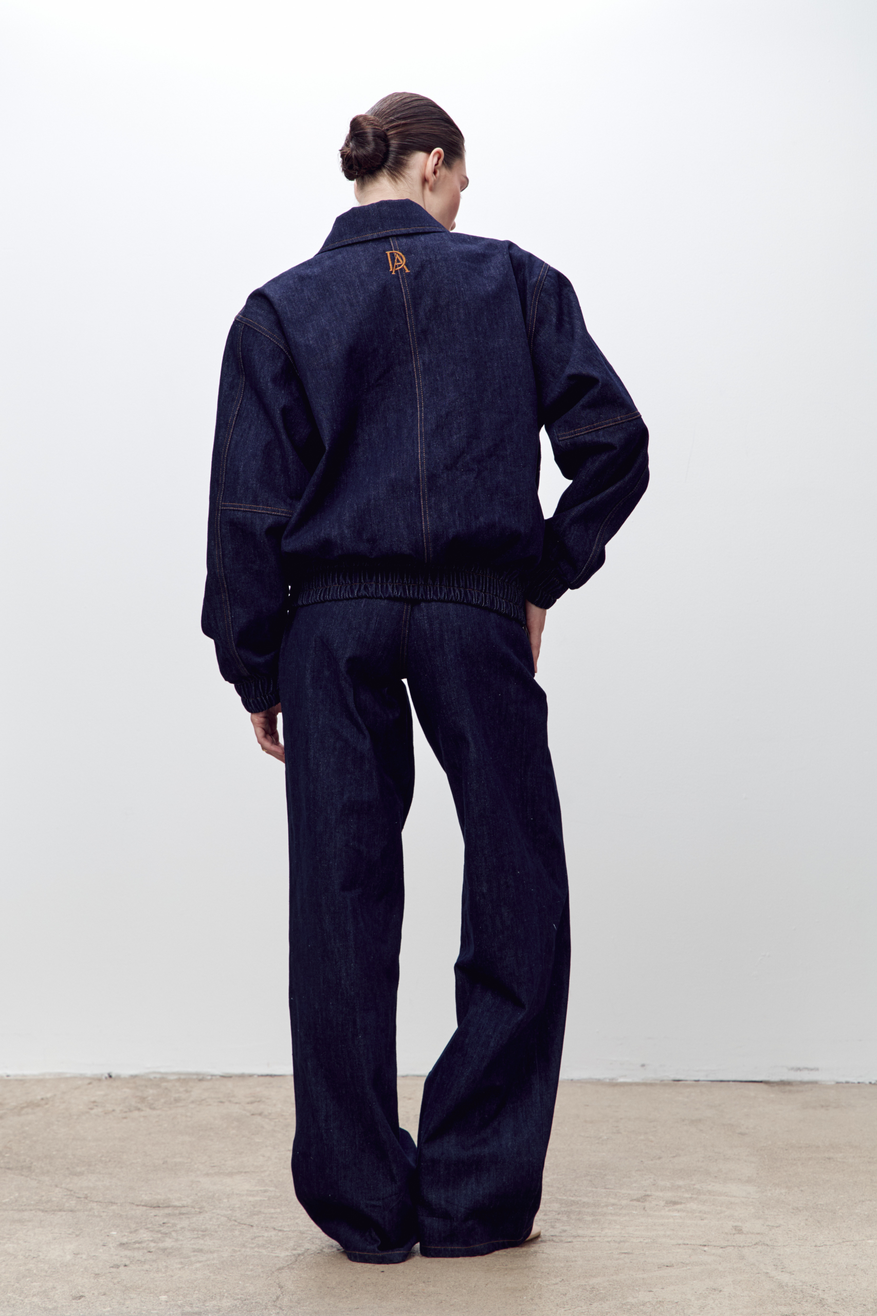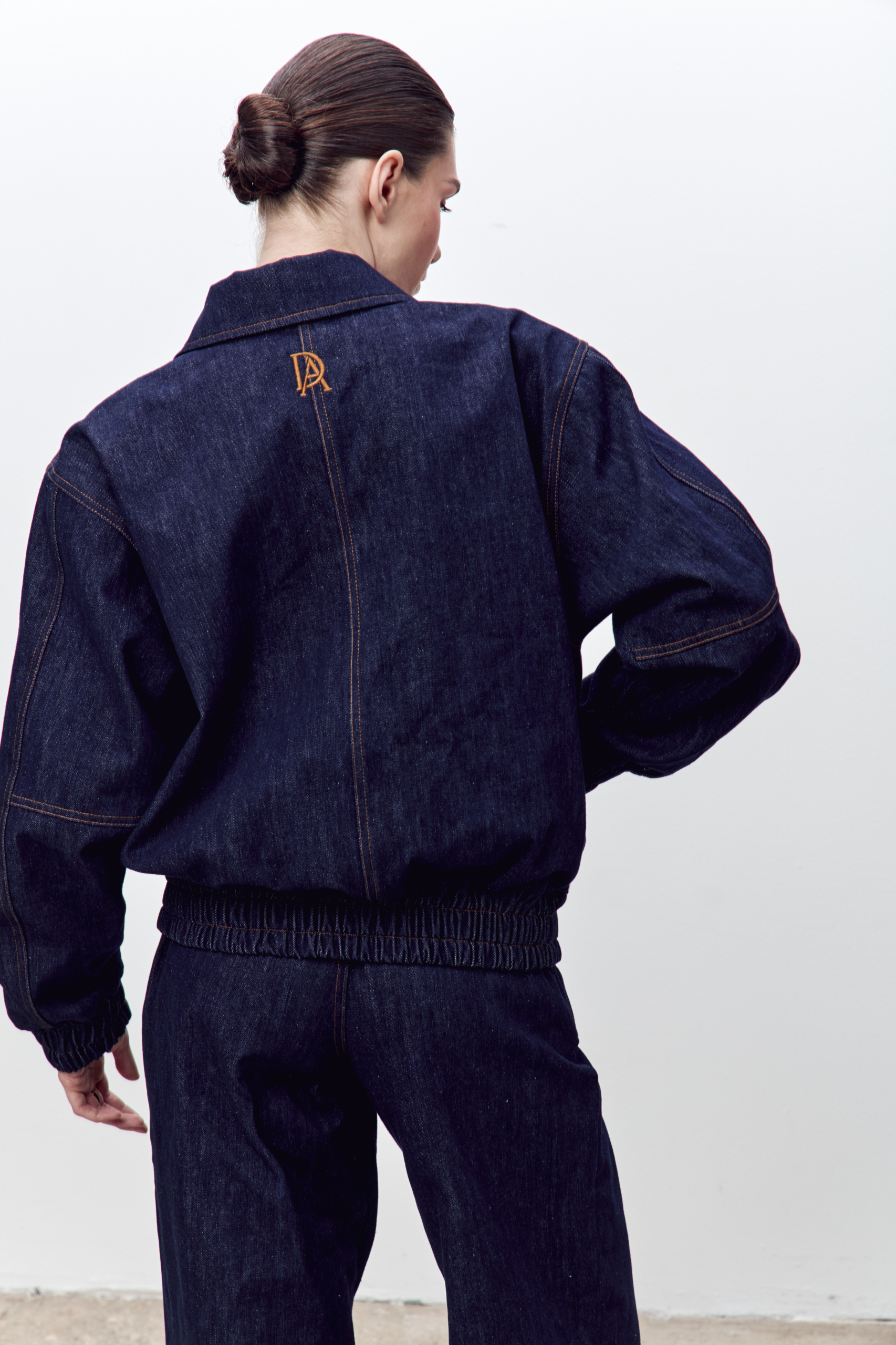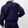 Бомбер глубокого синего оттенка свободного кроя из прочной джинсовой ткани из хлопка с черным подкладом и отложным воротником, функциональными и накладными карманами и плечевыми накладками на пуговицах внутри. Особый шик придает вышивка на спине. Отлично сочетается с джинсами Gabrielle