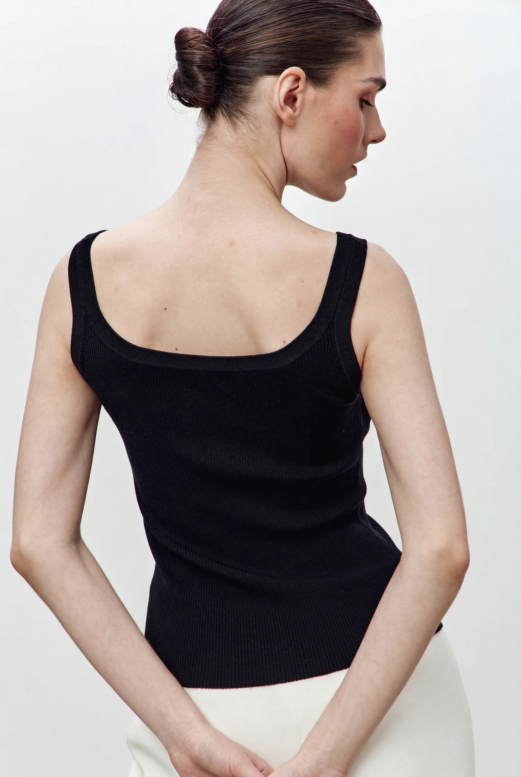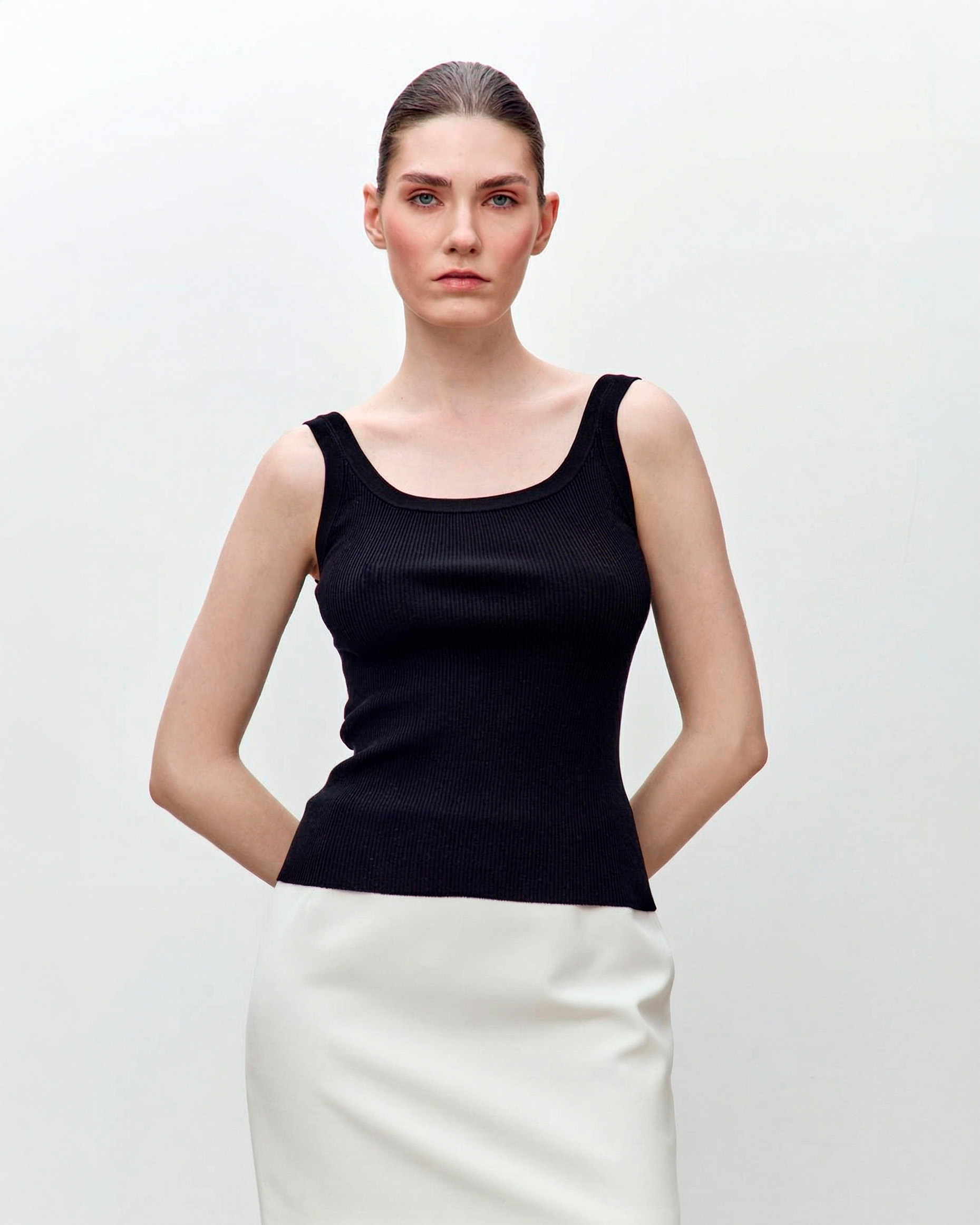 Майка из шерсти мериноса для комфорта и гигроскопичности, с добавлением эластана для долговечности.
