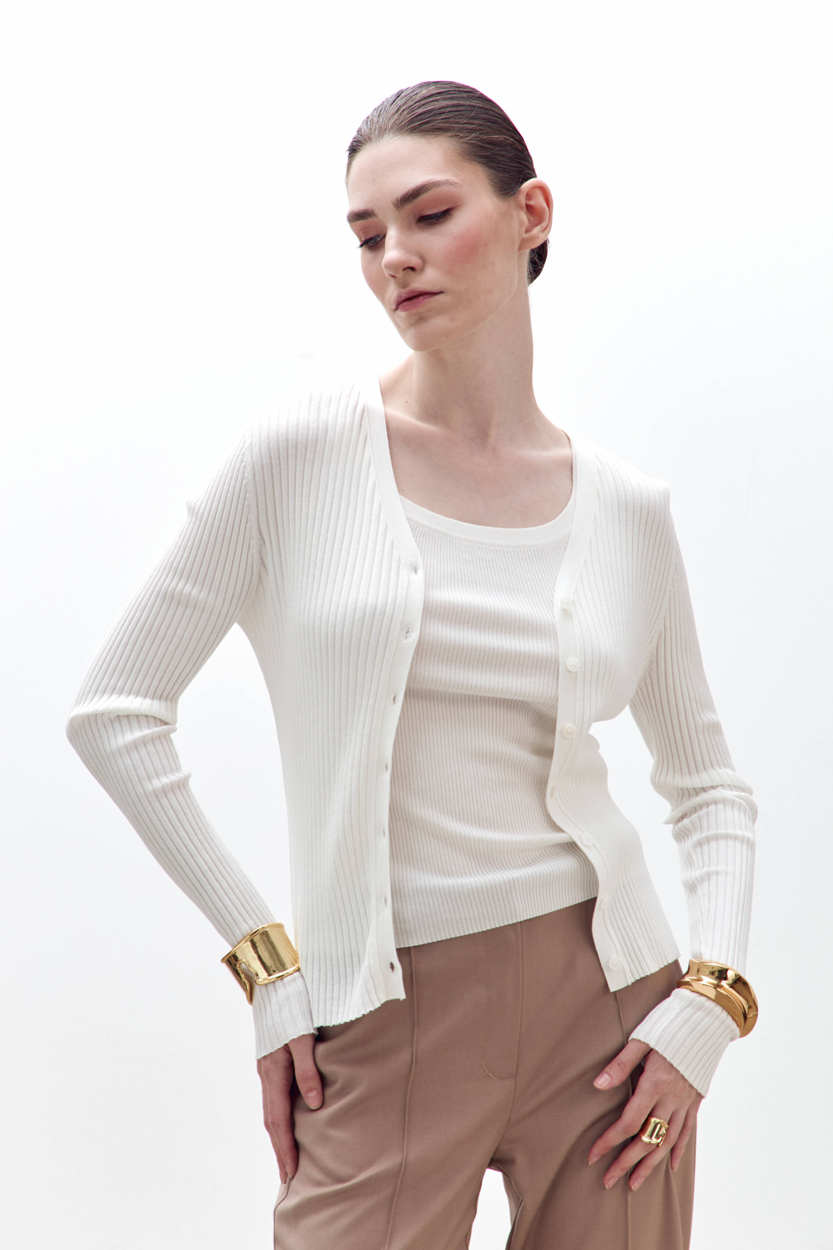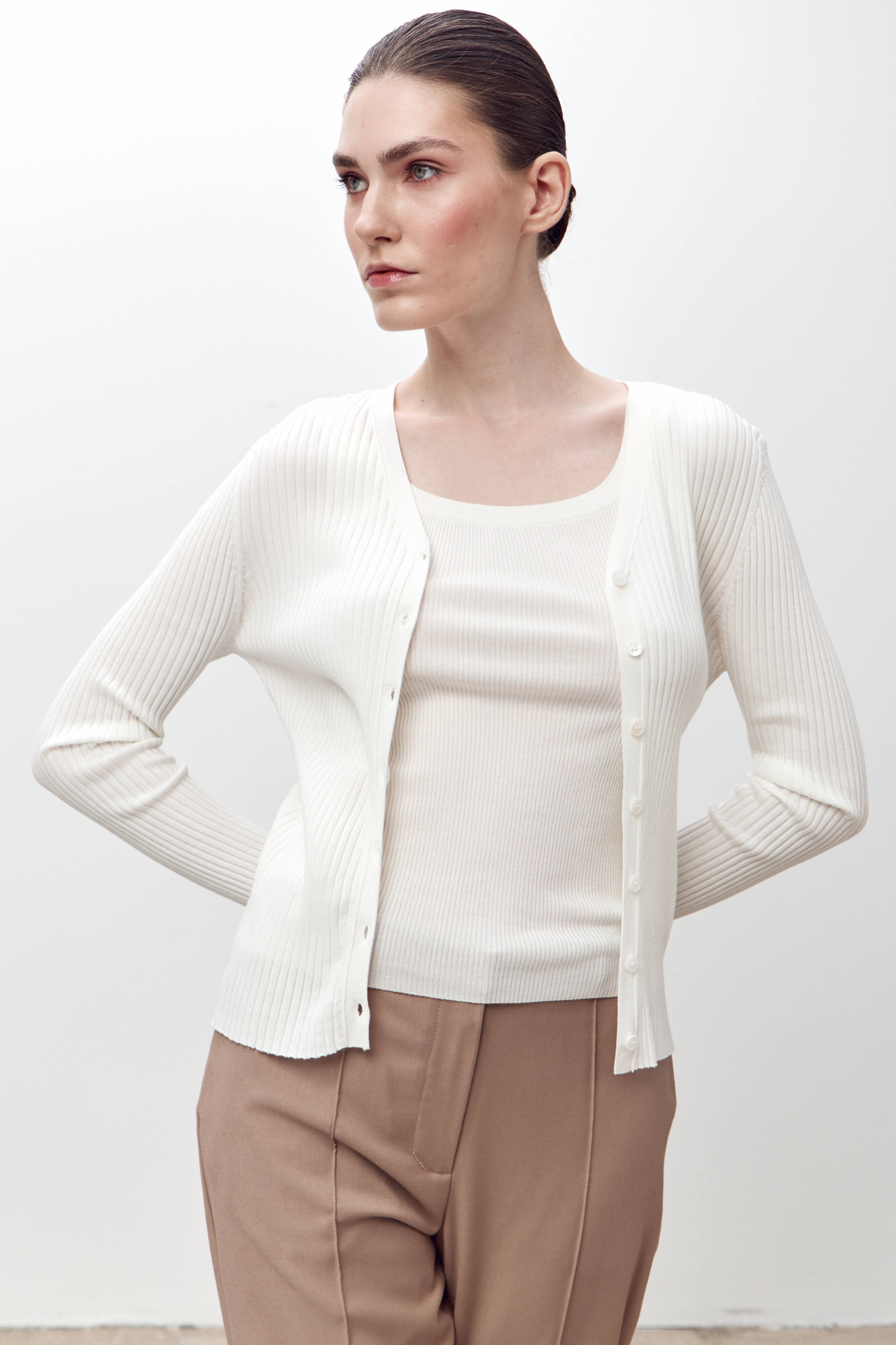 Майка из фактурного трикотажа прилегающего кроя с круглым вырезом, исполненная из высококачественной шерсти мериноса. Идеально сочетается с кардиганом в тон.