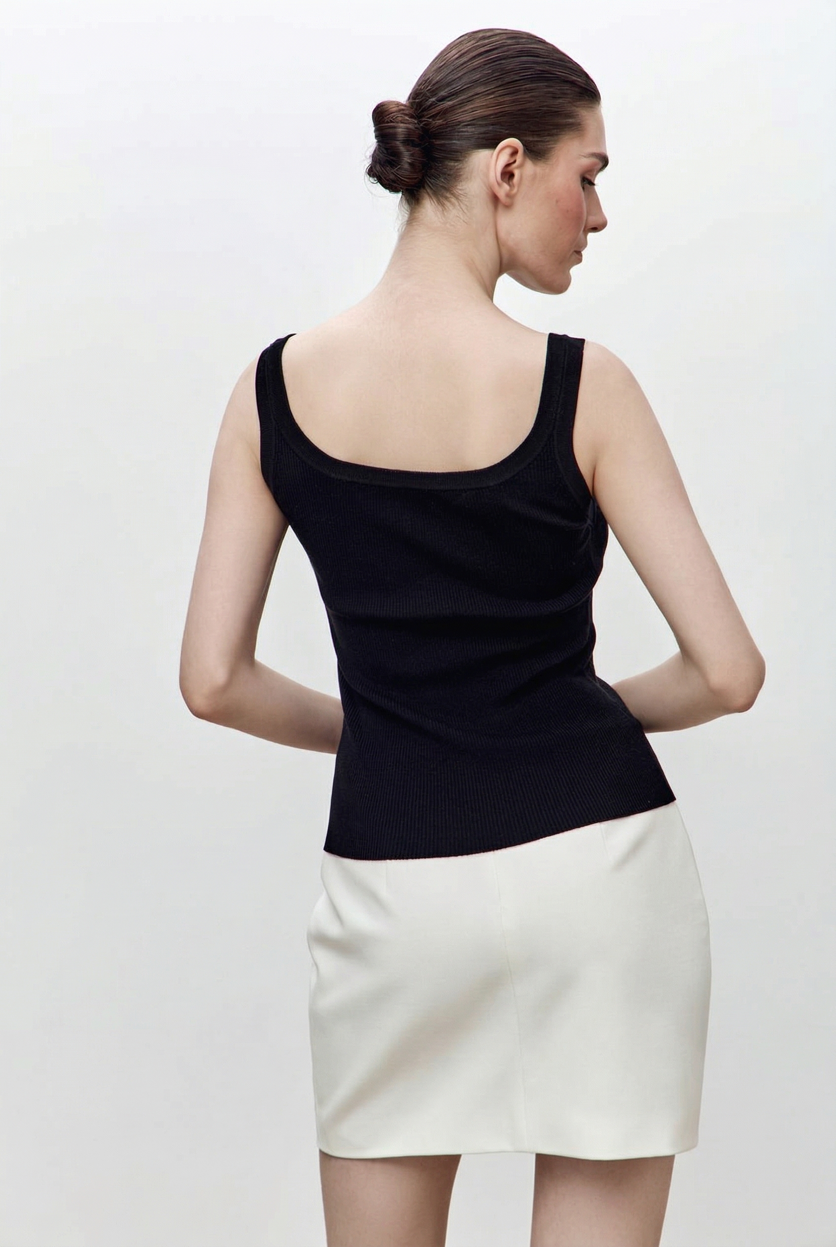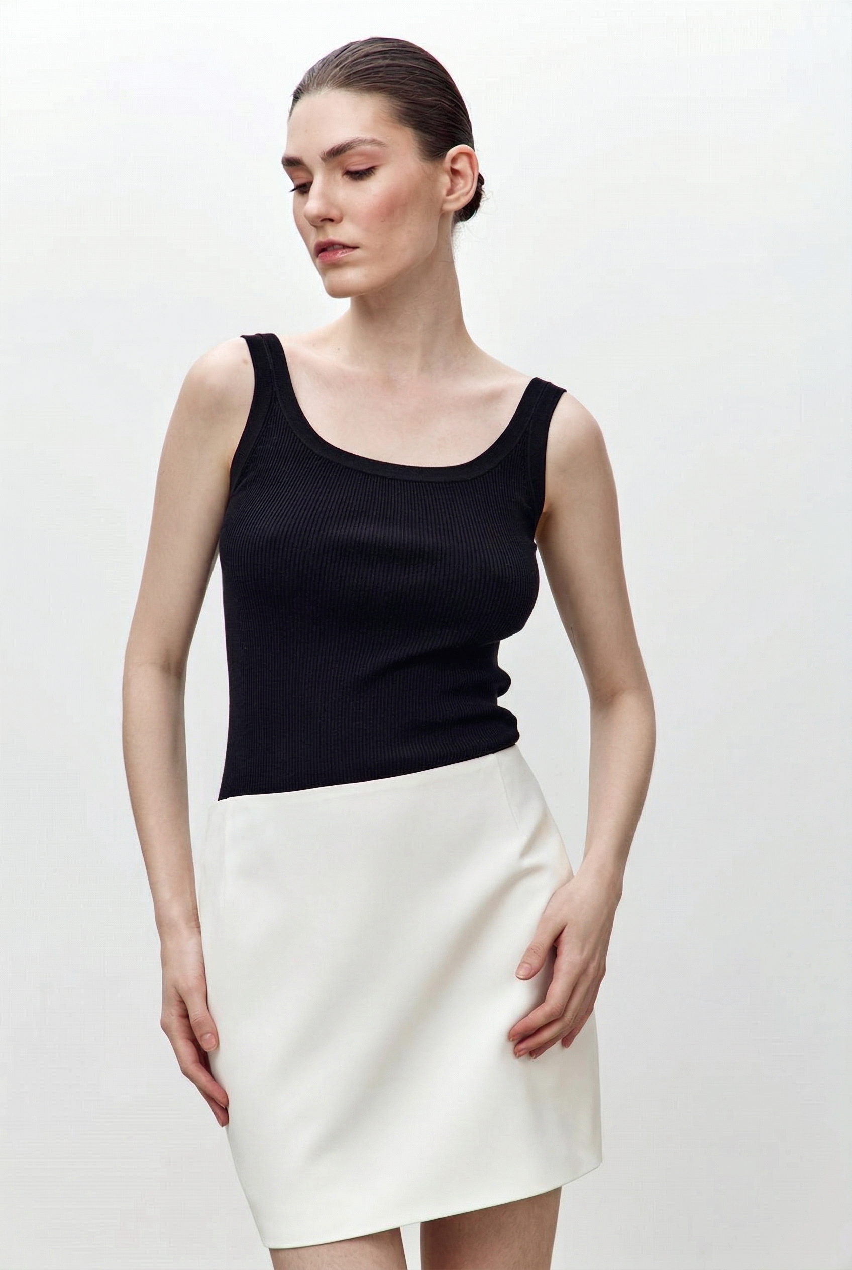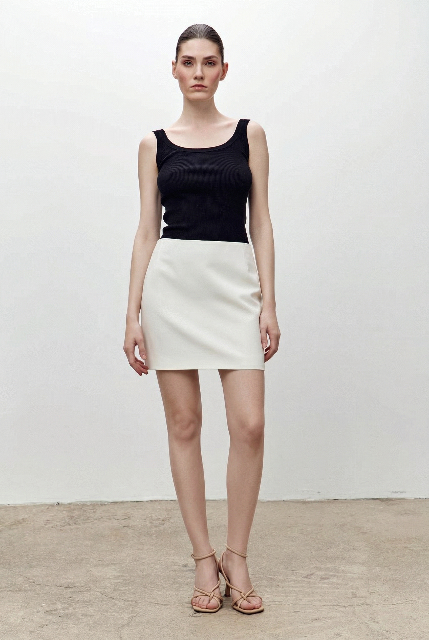 Короткая юбка из вискозы, застегивается на молнию сзади. Внутри прошита подкладочная ткань для комфорта при носке. Сочетается с жакетом из коллекции.