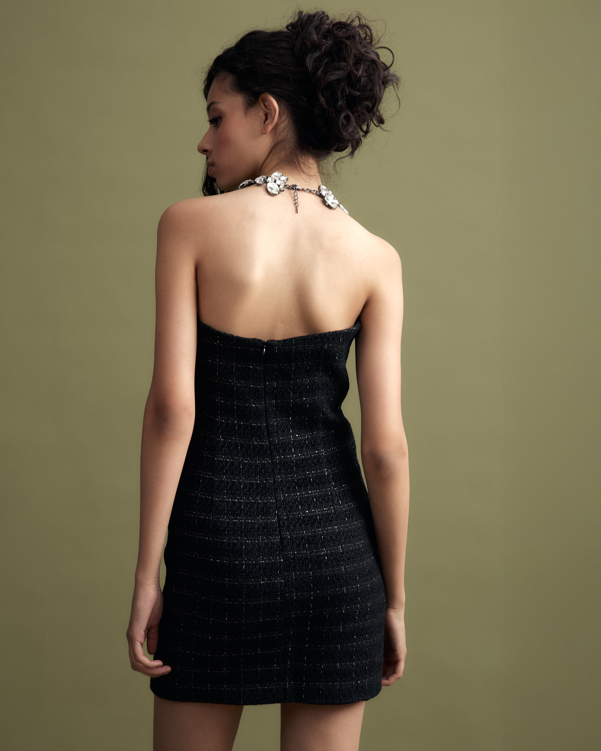 Платье-мини по фигуре на подкладке, выполненное из премиальной ткани высокого качества с добавлением золотой нити. Изысканное и комфортное платье для выхода в свет.