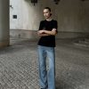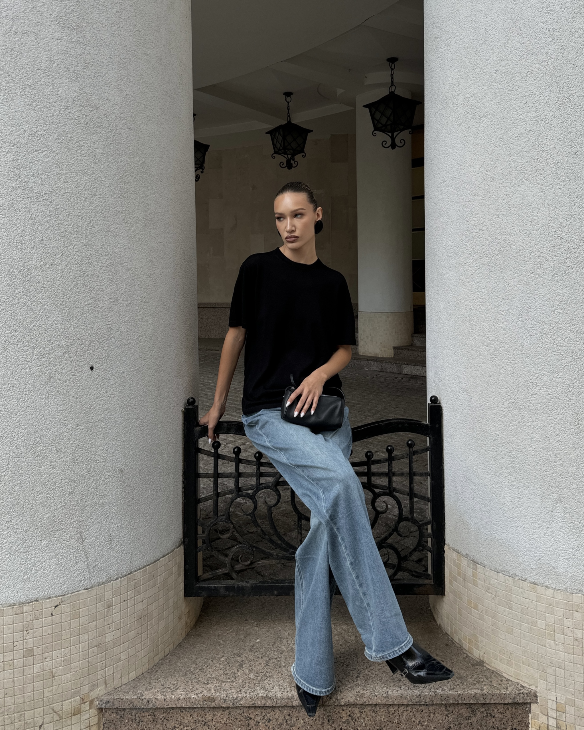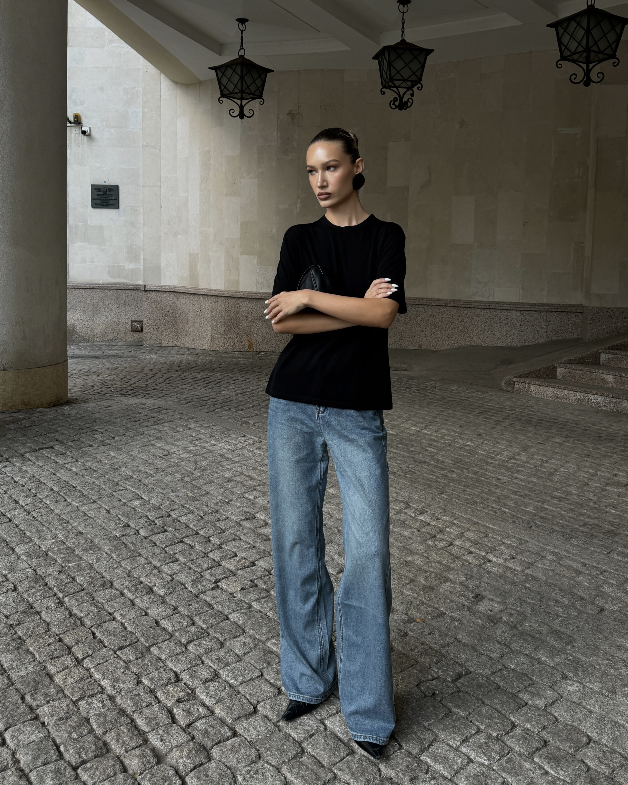 Прямые джинсы на высокой посадке