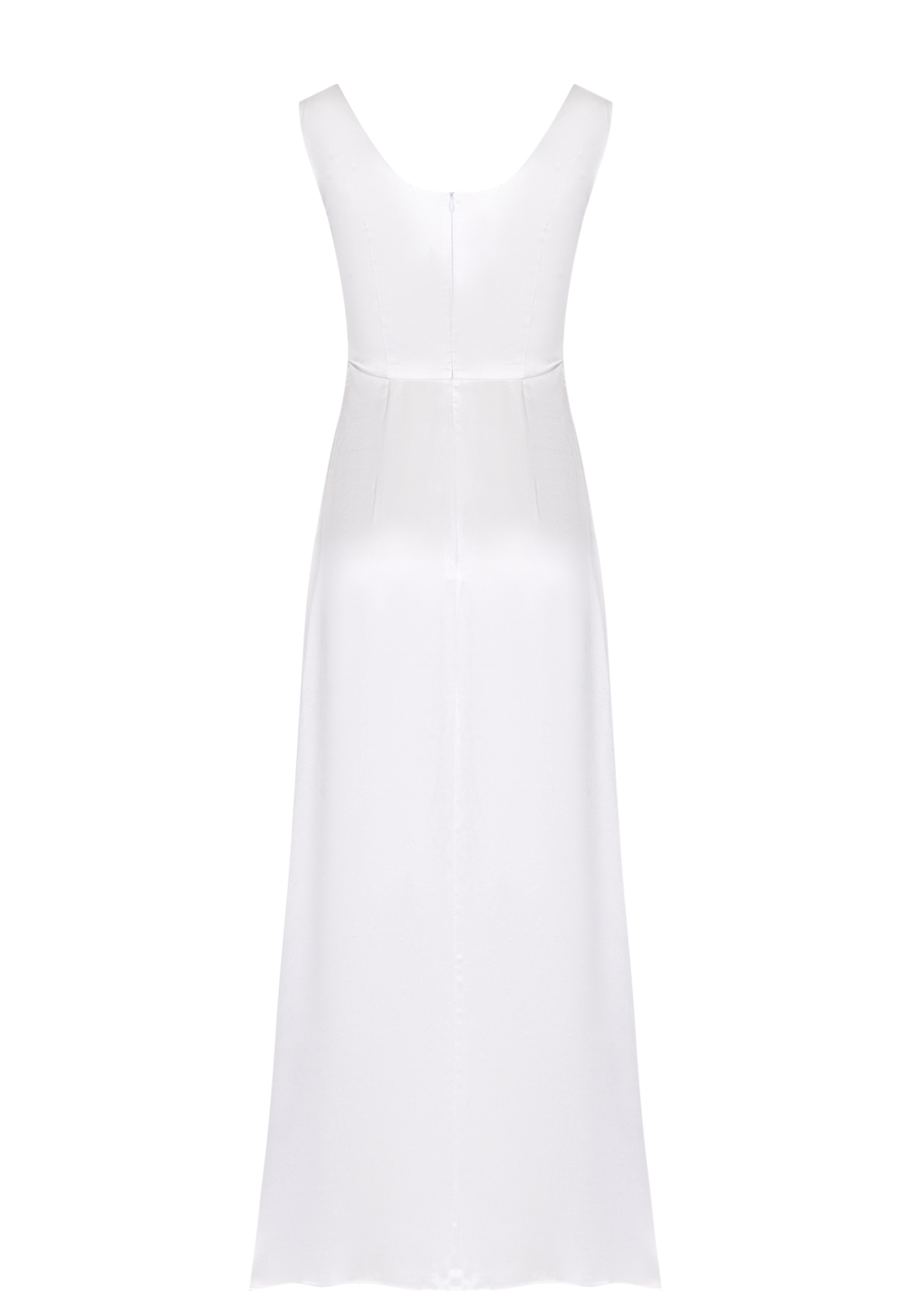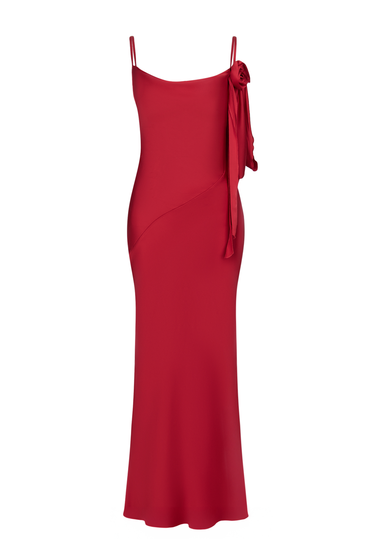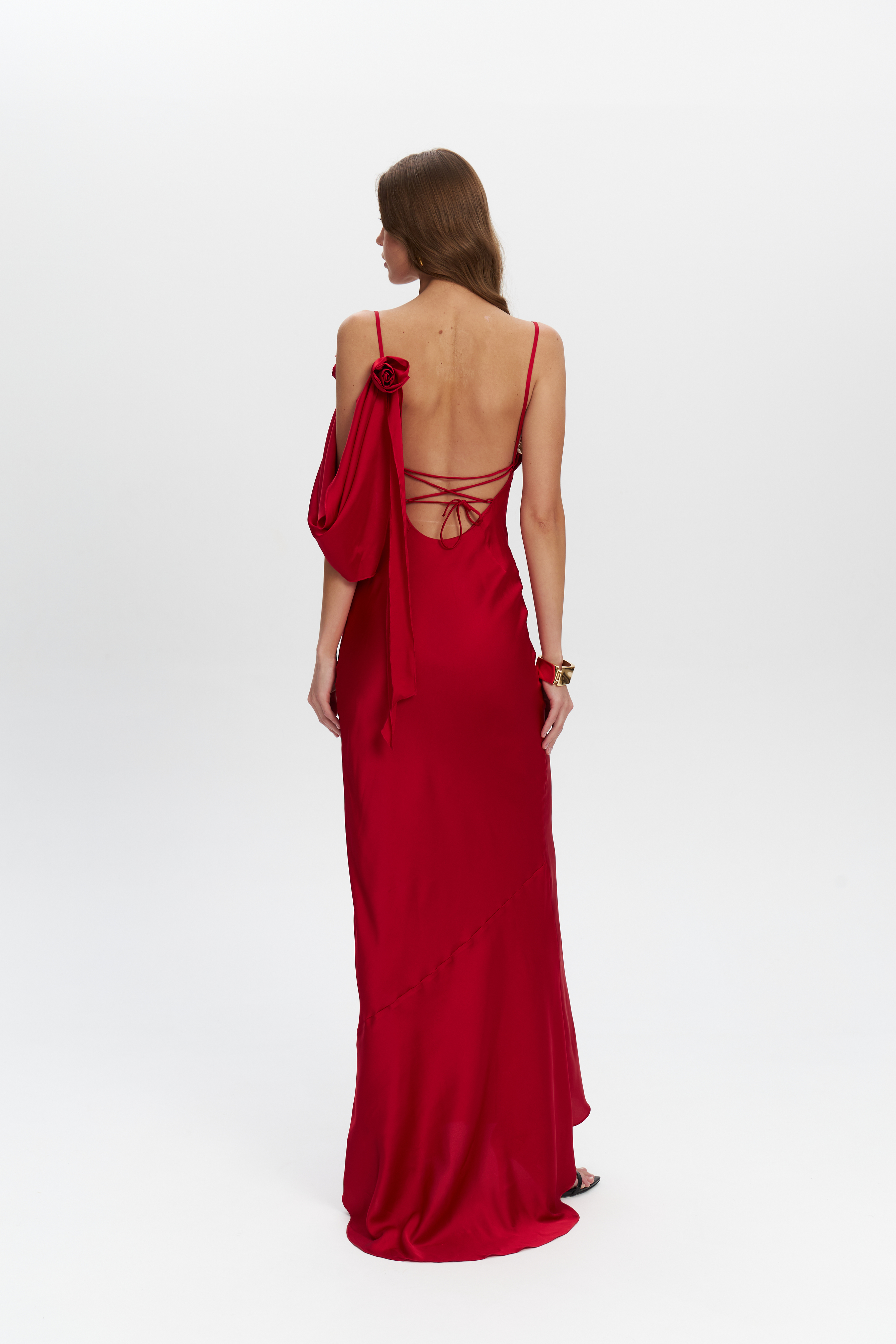 Вечернее платье с открытой спиной, декоративными и романтичными розами в зоне ключицы и плеча. Идеальный выбор для торжественного мероприятия, коктейля или особенного события.