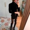 Водолазку облегающего силуэта выполнили из тонкого трикотажа из шерсти мериноса. Модель органично впишется в базовый гардероб.