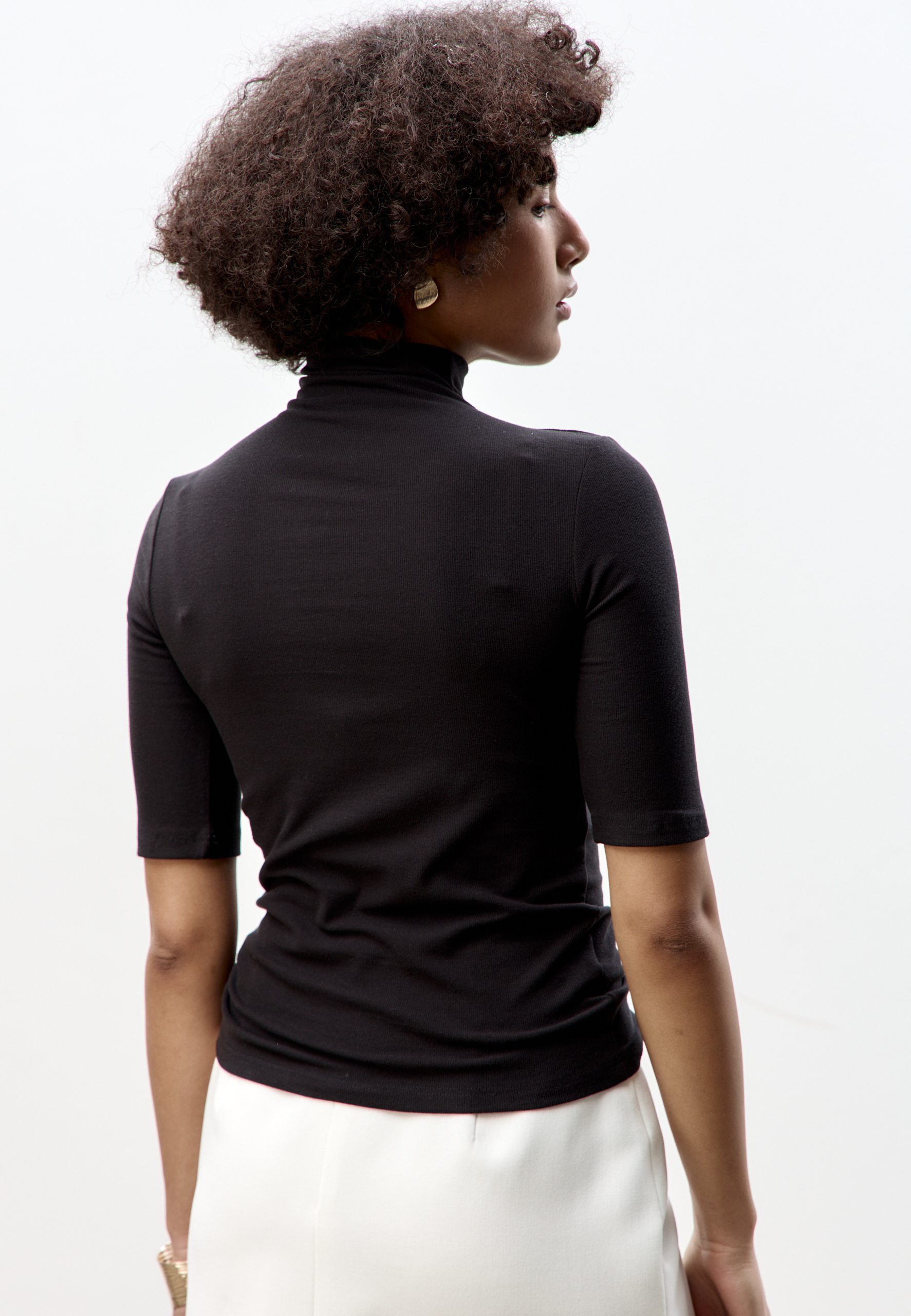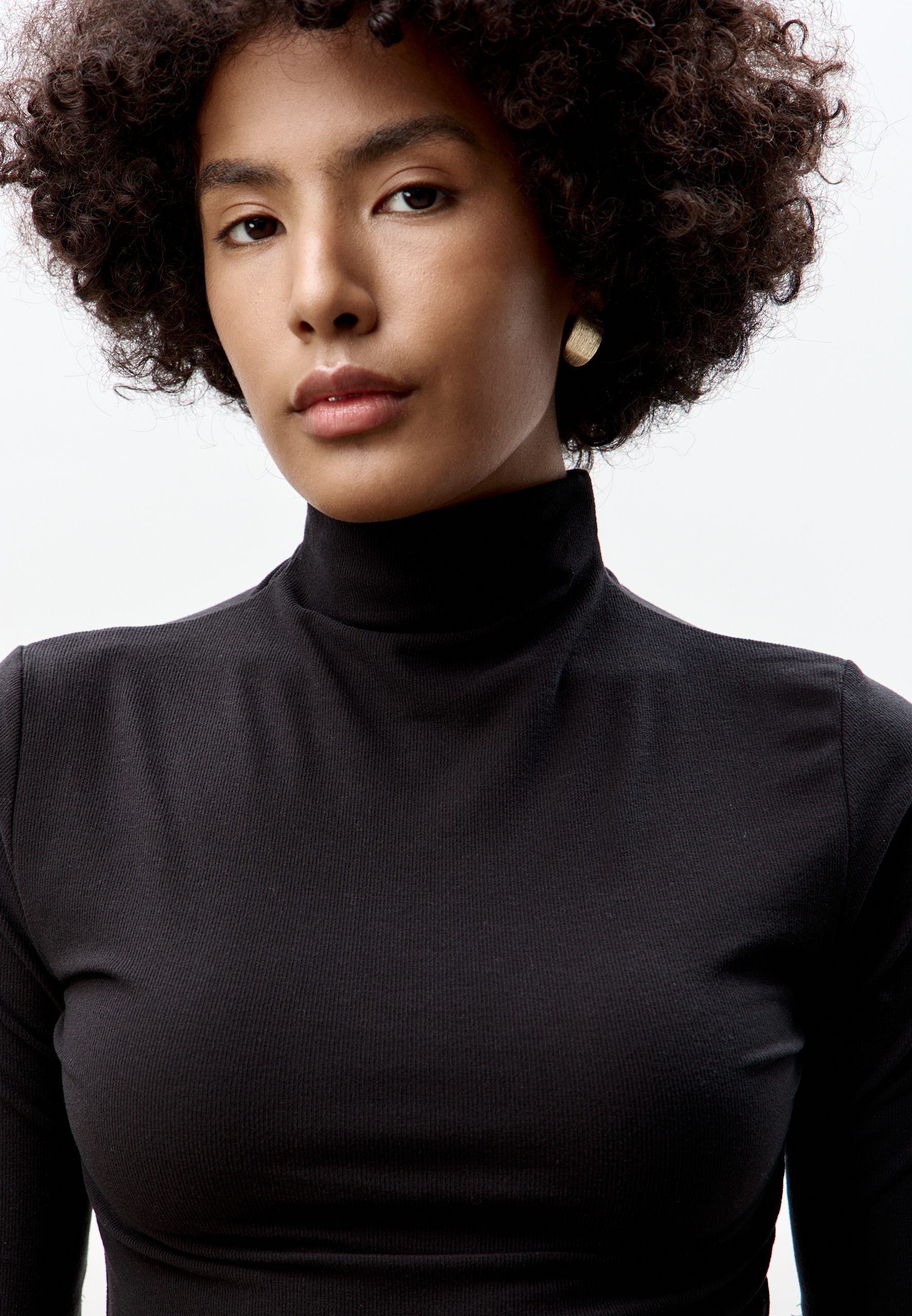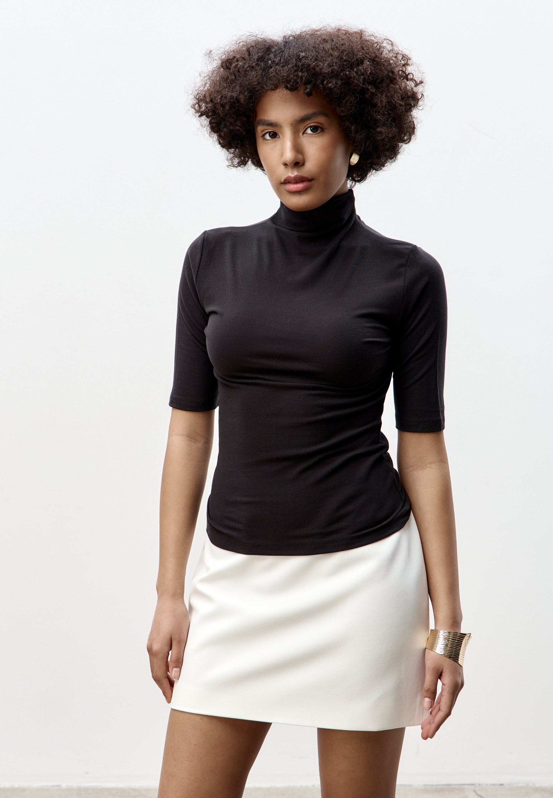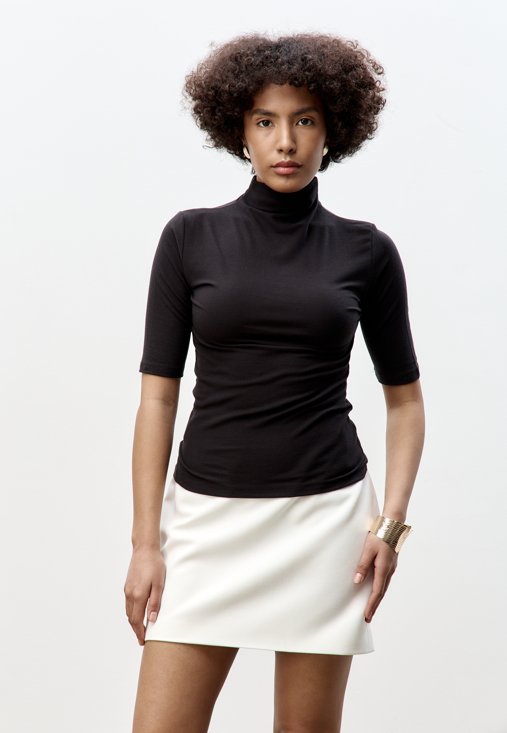 Водолазку облегающего силуэта выполнили из тонкого, эластичного и мягкого трикотажа высокого качества. Модель органично впишется в базовый гардероб.