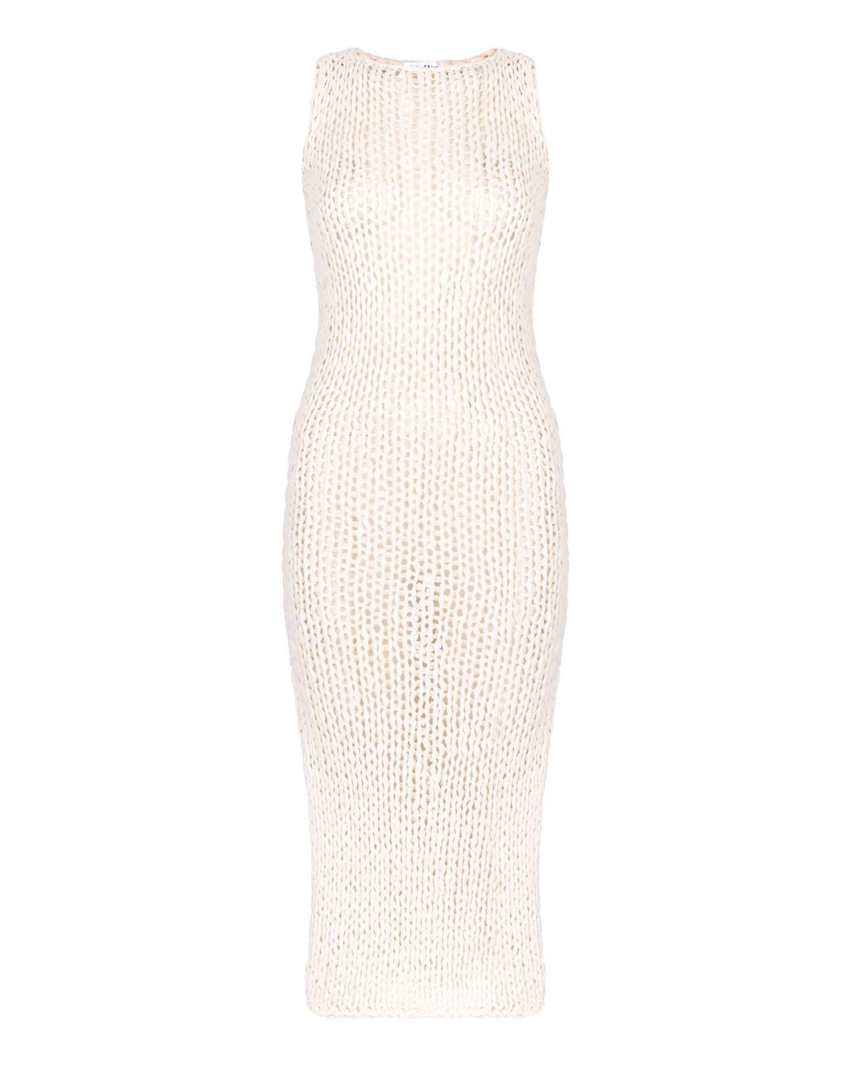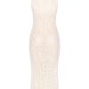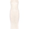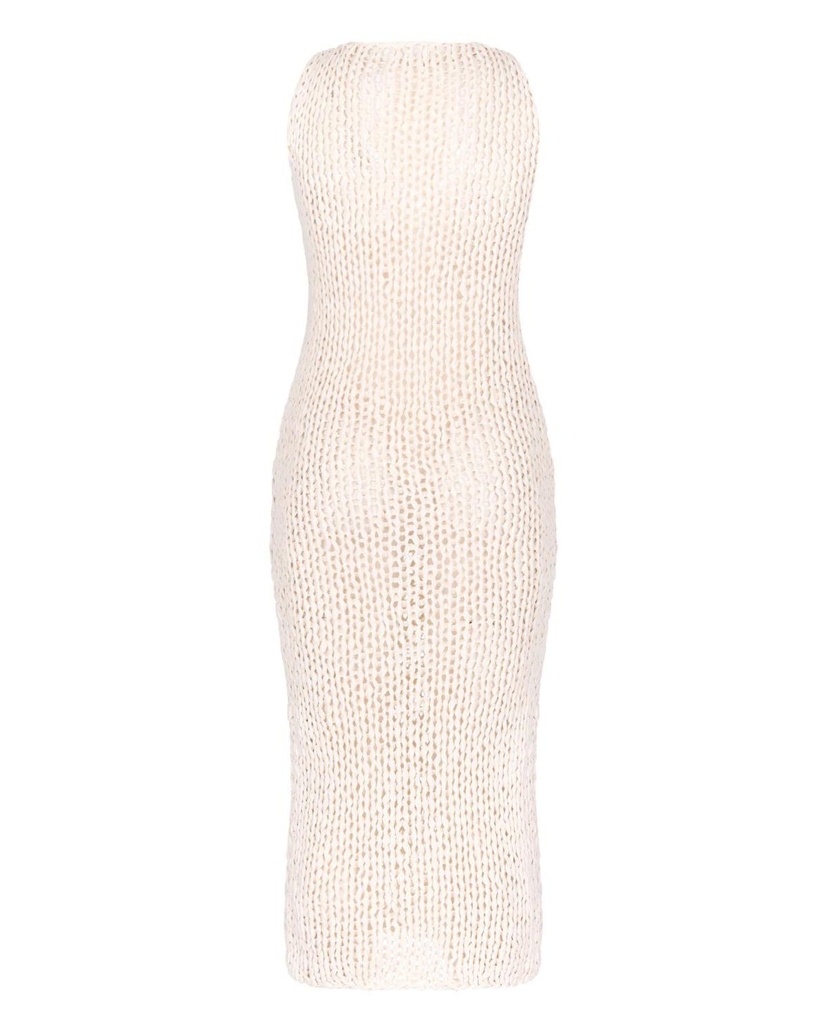 Дизайнеры бренда представили изысканное чувственное платье, исполненное вязкой с полупрозрачным мотивом, созданным крупным сетчатым плетением. Эластичная вязка позволяет изделию без швов идеально садиться и эффектно обегать фигуру, создавая акцент на изящном женственном силуэте. Приятной к телу модель делает отсутствие швов и мягкая, тактильно приятная пряжа, ставшая такой благодаря сочетанию хлопка и нежной вискозы. Для поддержания удобства шага предусмотрен боковой разрез.