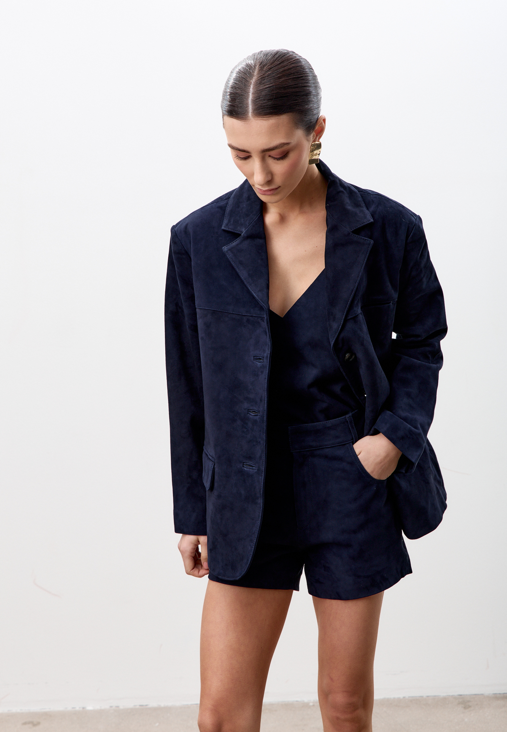 Замшевый жакет с тремя карманами, с подкладочной тканью из вискозы. С брендированными и функциональными пуговицами на рукавах и передней части