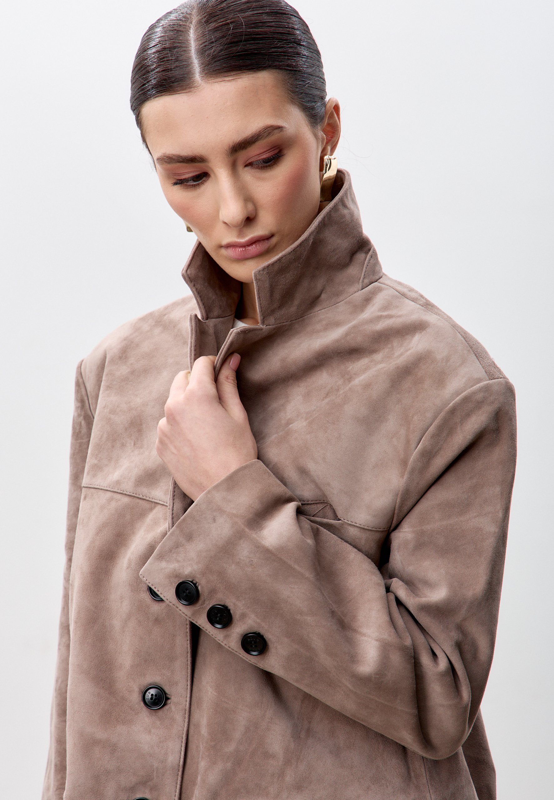 Замшевый жакет с тремя карманами, с подкладочной тканью из вискозы. С брендированными и функциональными пуговицами на рукавах и передней части