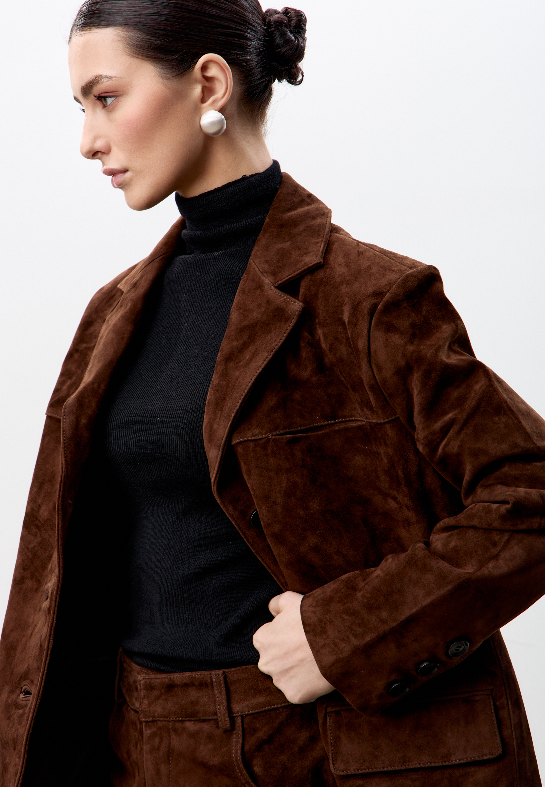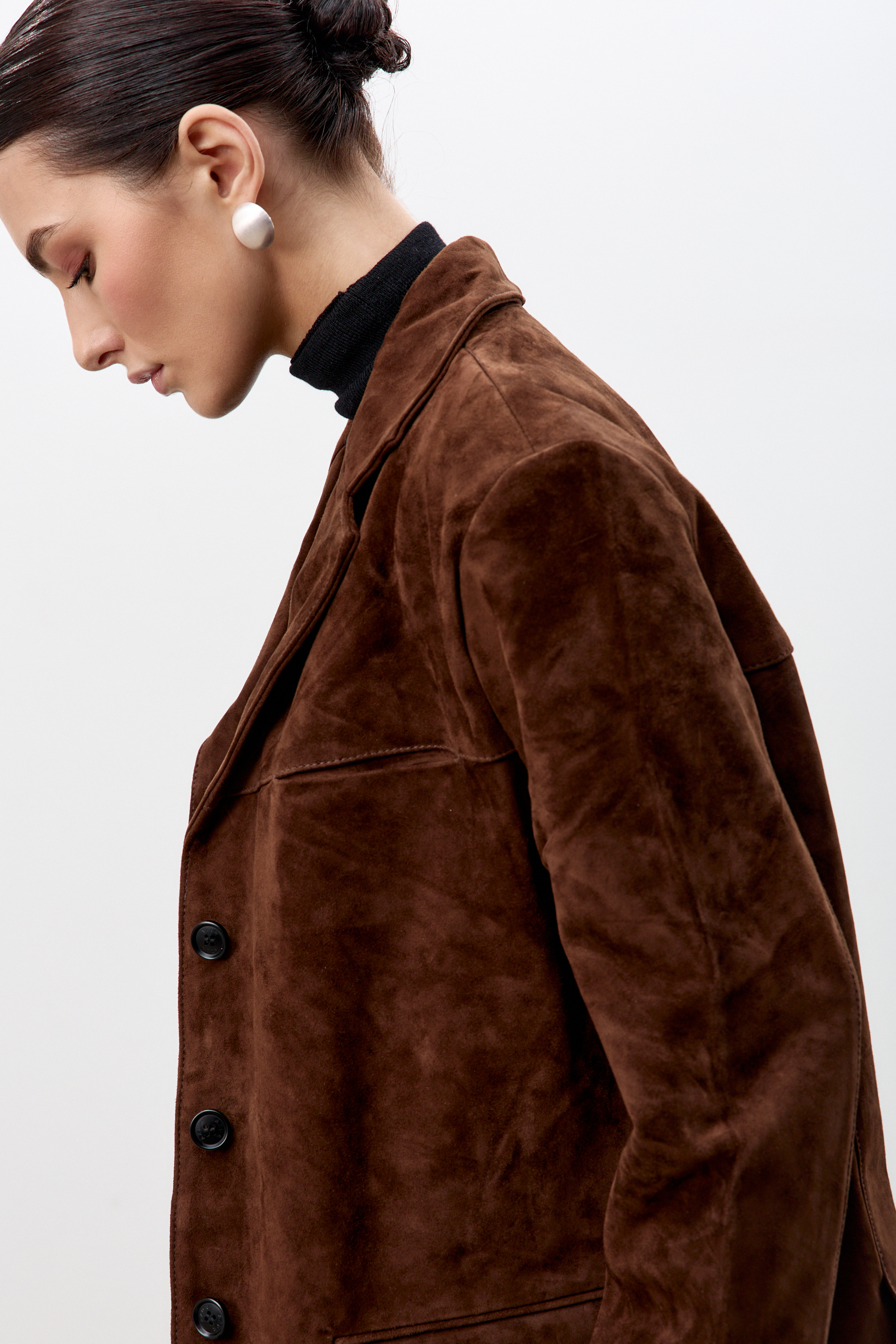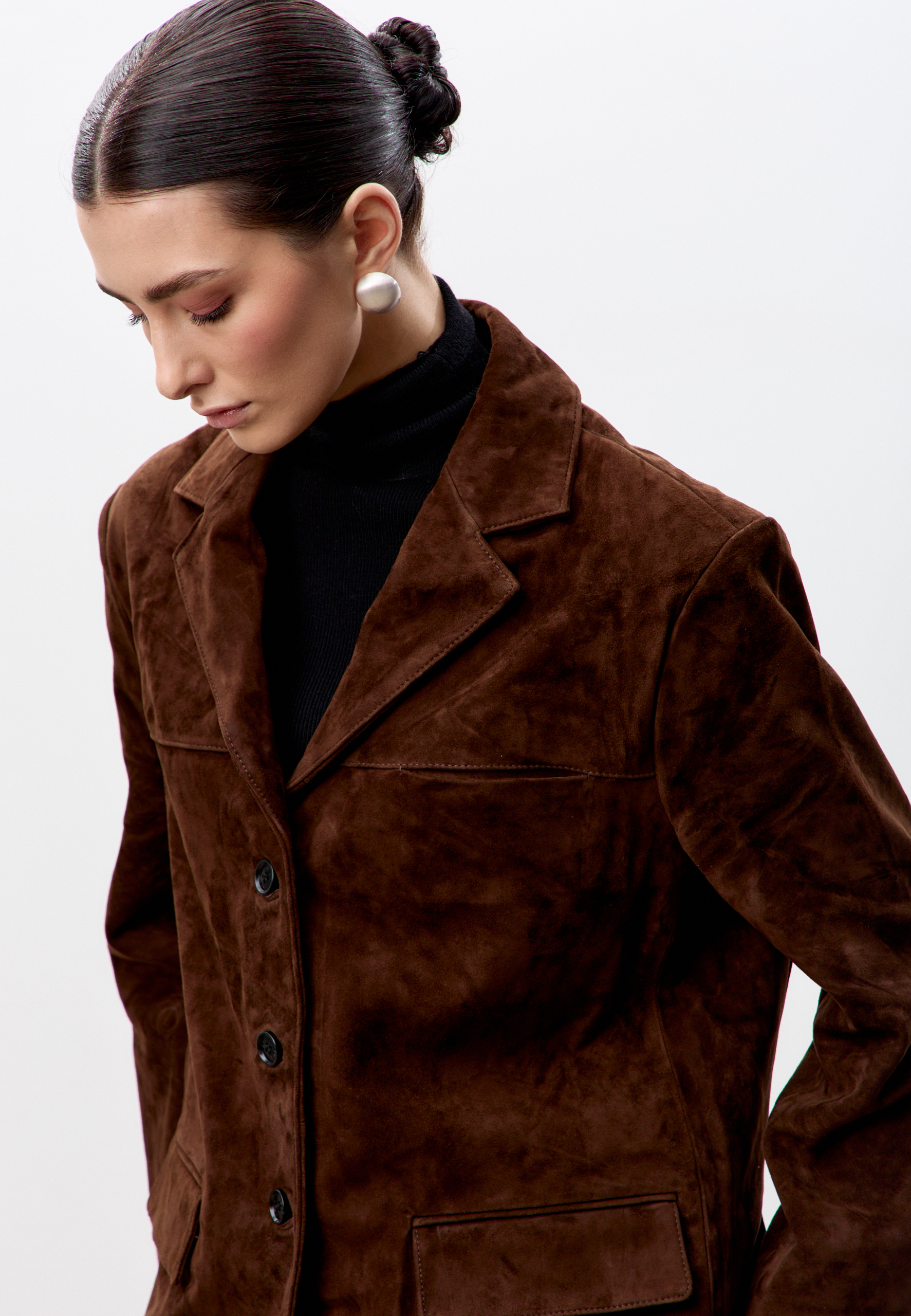 Замшевый жакет с тремя карманами, с подкладочной тканью из вискозы. С брендированными и функциональными пуговицами на рукавах и передней части